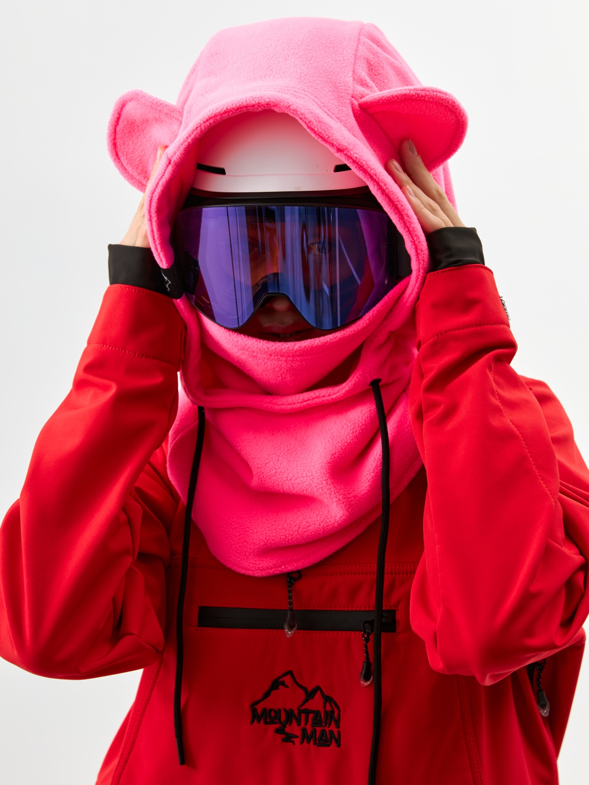 • Детали с характером: ушки медвежонка превращают балаклаву в запоминающийся элемент зимнего гардероба.