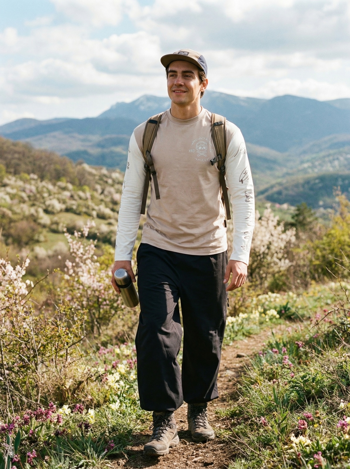 Изготовлен из кулирной глади с добавлением эластана — приятный на ощупь материал, который хорошо тянется и дышит. Такой лонгслив комфортен при температуре от +15 до +30°C и станет отличным вариантом на весну, лето и тёплую осень. Принт добавляет характер изделию, а грамотный уход сохранит его надолго.